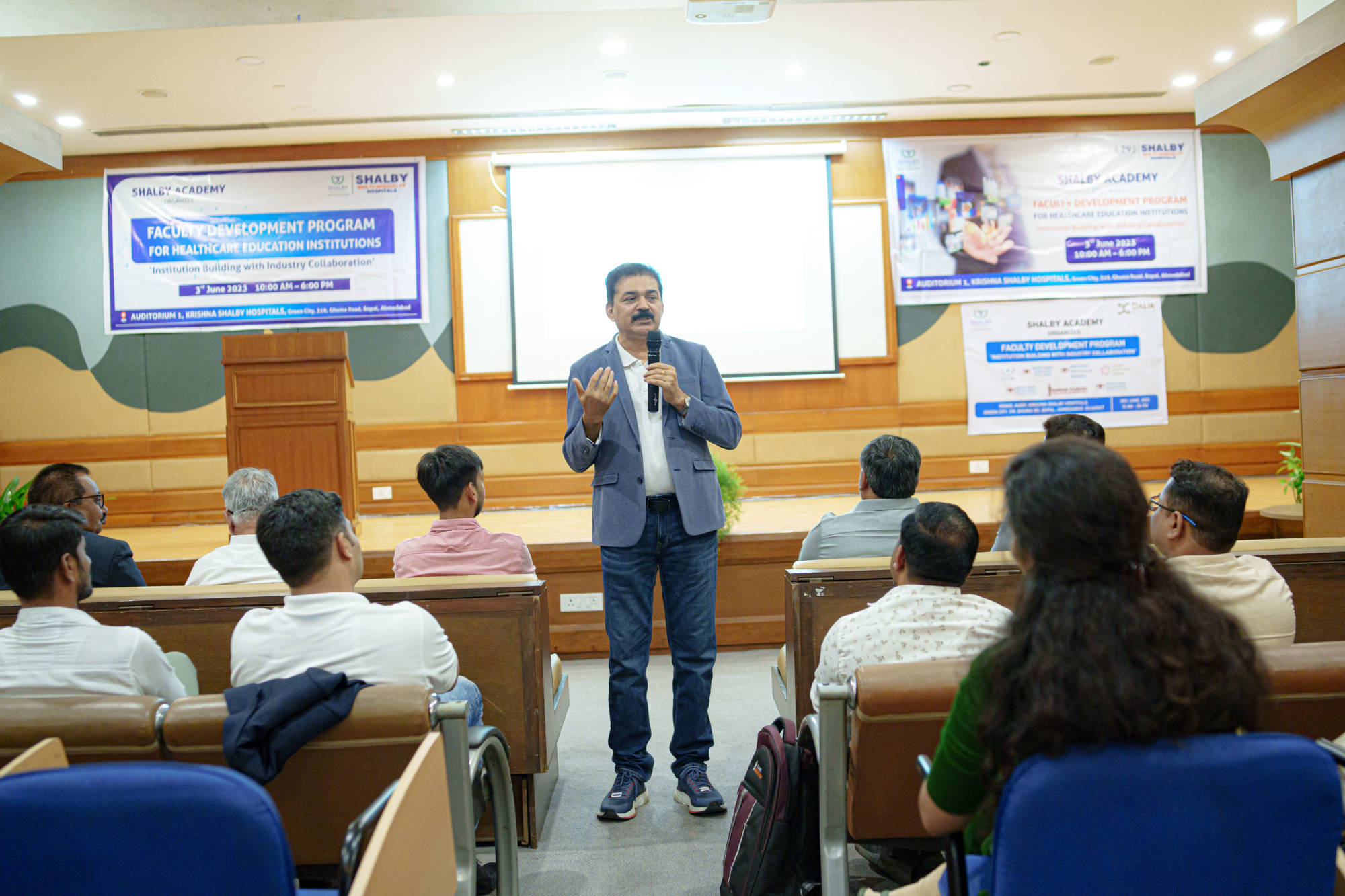 Mr. Masila Mani, Assistant Vice President of Shalby Academy's Learning and Development, addressed the significance of creating a sustainable impact on students to mold them into responsible healthcare professionals. He emphasized the importance of instilling ethical values, compassion, and a patient-centric approach in future healthcare providers. By nurturing these qualities, educators can contribute to building a healthcare workforce that is not only skilled but also empathetic and caring.