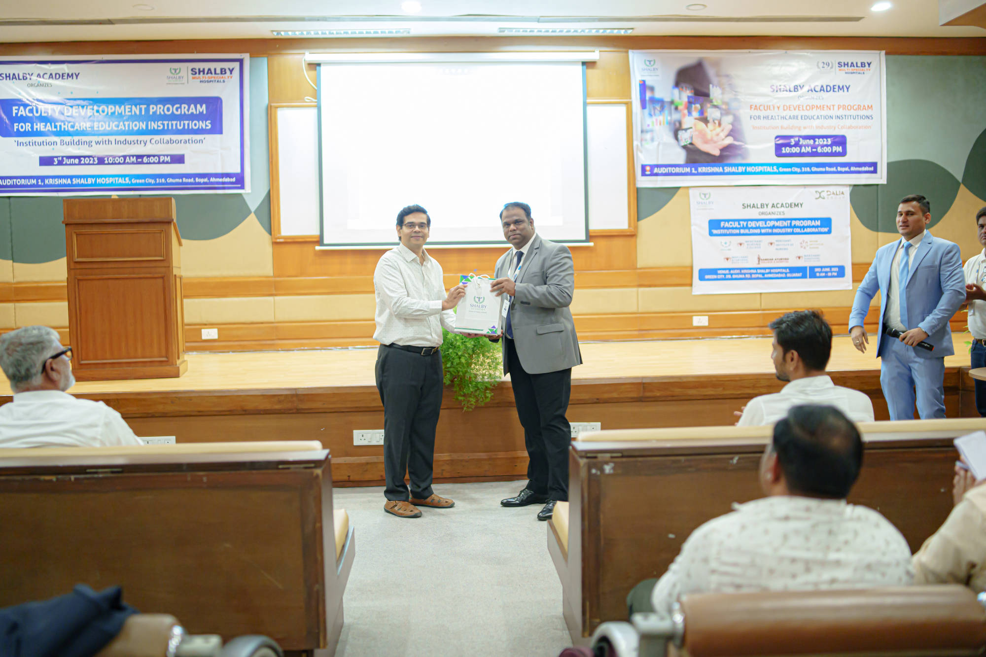 Mr. Kaushik Chakraborty, Assistant General Manager at Shalby Academy, concluded the Faculty Development Program by expressing gratitude to all the speakers and participants. He summarized the key takeaways from each topic, emphasizing the importance of integrating industry expectations, self-upgradation, bridging the gap between industry and academia, creating responsible professionals, compliance and financial prudence, quality and regulatory requirements, and industry-academia visits into the teaching and learning process. He encouraged all educators to apply the knowledge gained from the FDP to enhance the educational journey and contribute to the holistic development of their students.